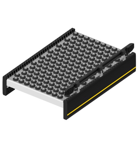 Конвейерная система состоит из роликовых и ленточных модулей и прочих важных элементов. Роликовые модули, в свою очередь, могут быть приводными и неприводными.