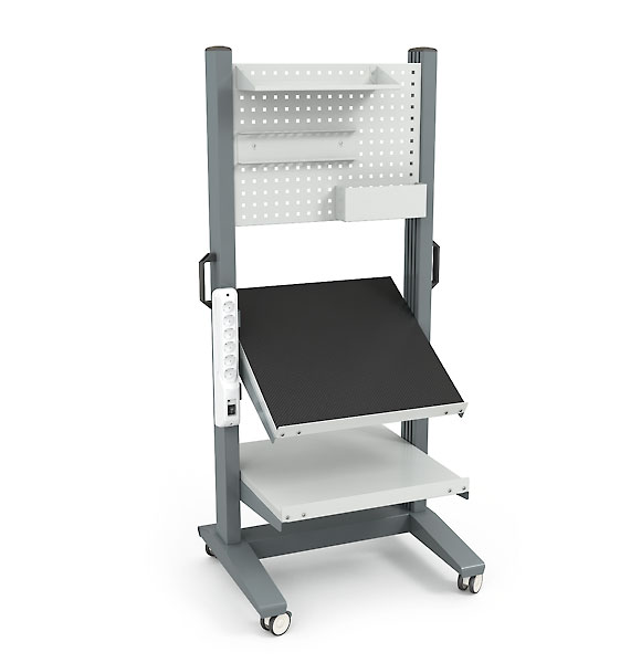 Подкатные стойки ДиКом СР ESD обладают антистатическими свойствами и предназначены для монтажа и работы с электрооборудованием и радиомеханикой, а также удобного перемещения инструмента и компонентов на производстве и мастерской. Оснащены 4 колесами со стопорным механизмом.